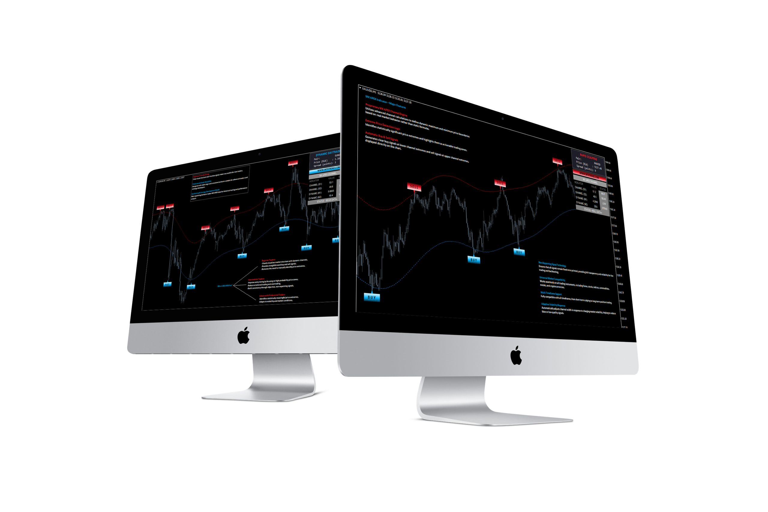 Simple arrow or icon markers indicate when price has reached a strategic extreme.